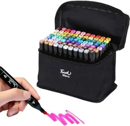 Presentamos marcadores creativos con 80 colores vibrantes, organizados en una práctica y exclusiva bolsa negra: ¡el kit perfecto para despertar al artista en cada miembro de tu hogar!